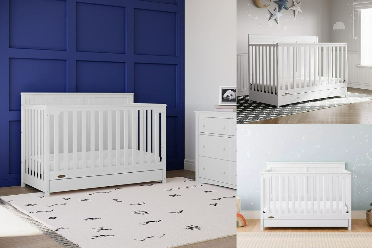 Graco Hadley 5-in-1 Convertible Crib with Drawer, convertible crib, baby crib with storage, nursery furniture, crib with drawer, toddler bed, full size crib, Greenguard Gold certified crib, JPMA certified crib, best convertible cribs
