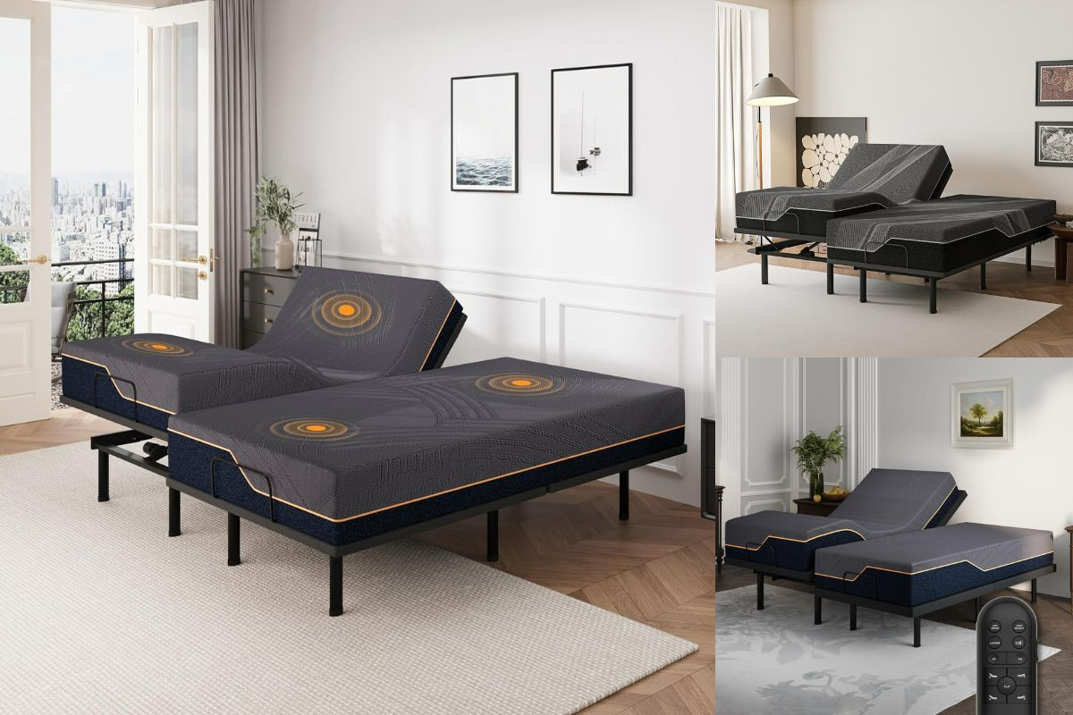 Discover the Dyonery Split King Adjustable Bed Frame with Mattress, featuring zero gravity comfort, copper memory foam, and dual adjustability.