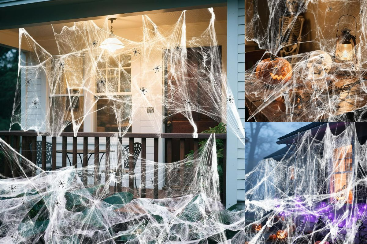 Land Guard 1000 sqft Spider Web Kit with 50 spiders transforms your home into a spooky scene. Affordable Halloween must-have, now 40% off on Amazon!