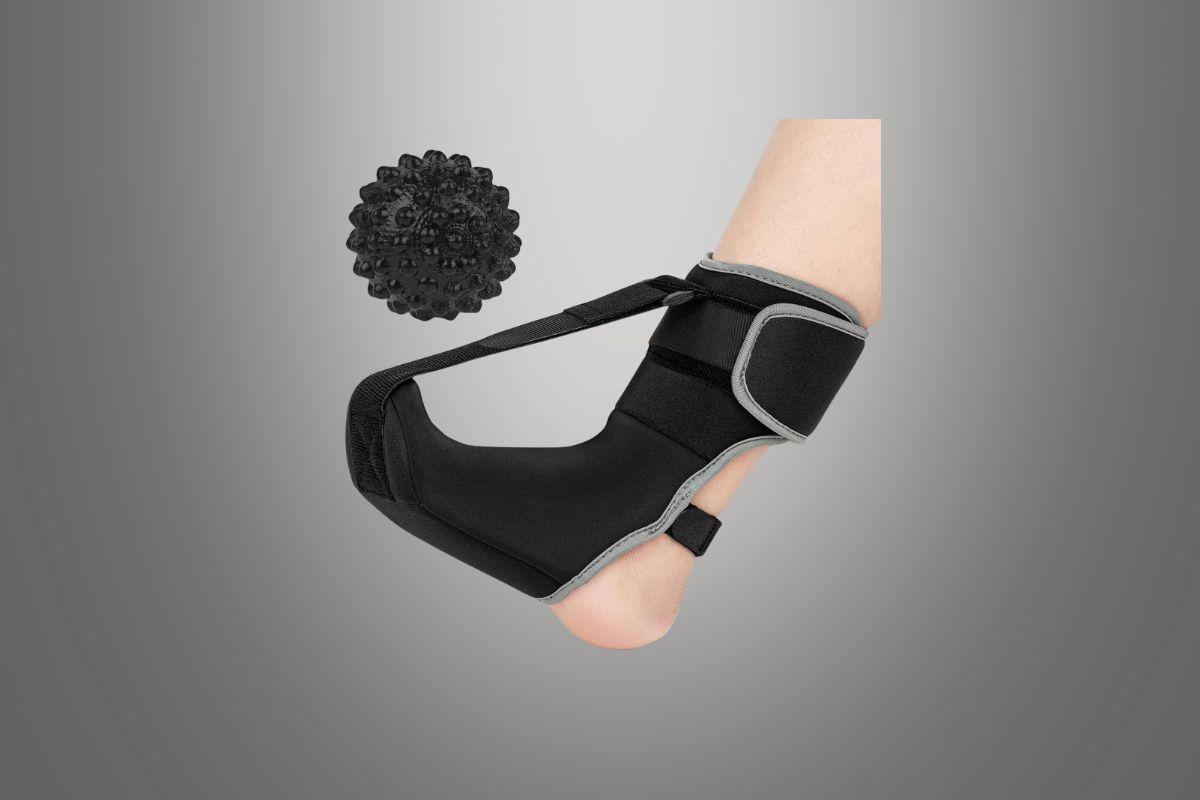 Plantar Fasciitis Night Splint Sock with Massage Ball gives overnight heel pain relief. Soft, adjustable design with massage ball—20% off on Amazon today!