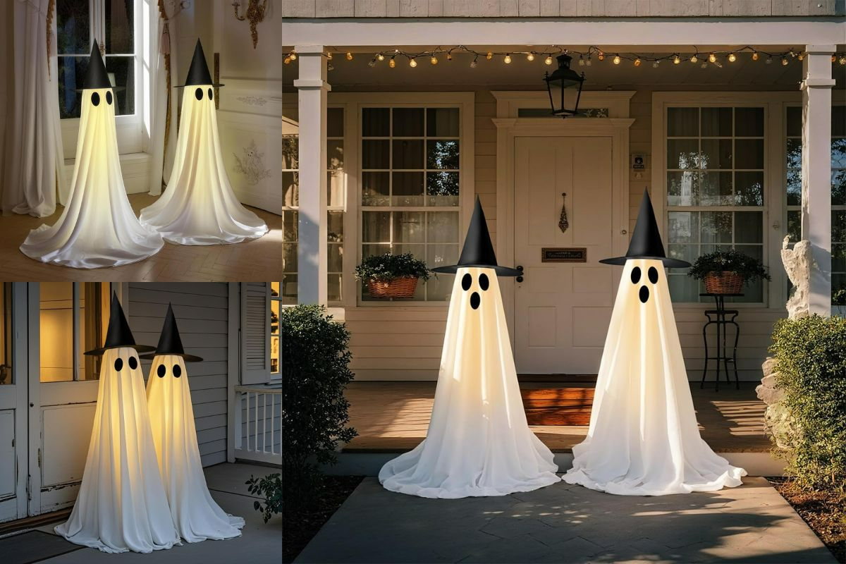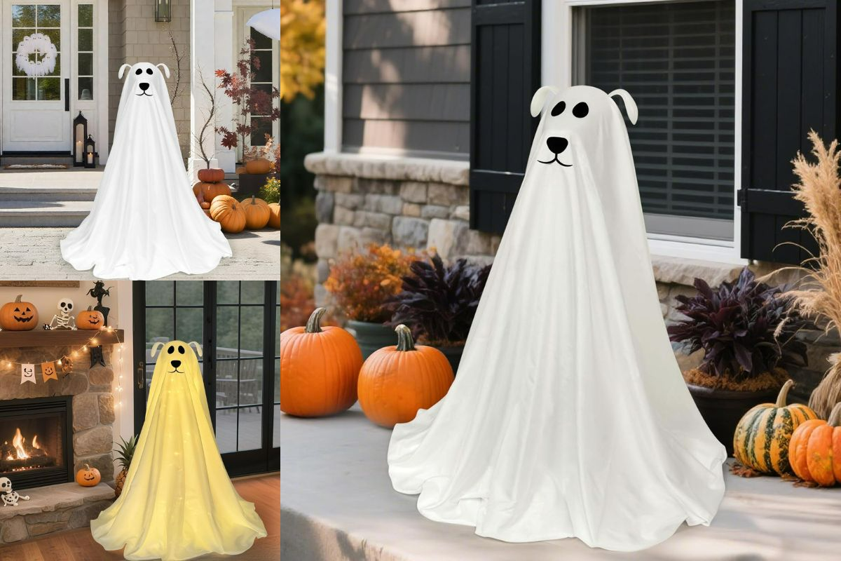 DAZONGE Halloween Decorations Light-Up Freestanding Spooky Ghost Dog adds glowing charm indoors or outdoors—30-inch festive décor now 36% off on Amazon!
