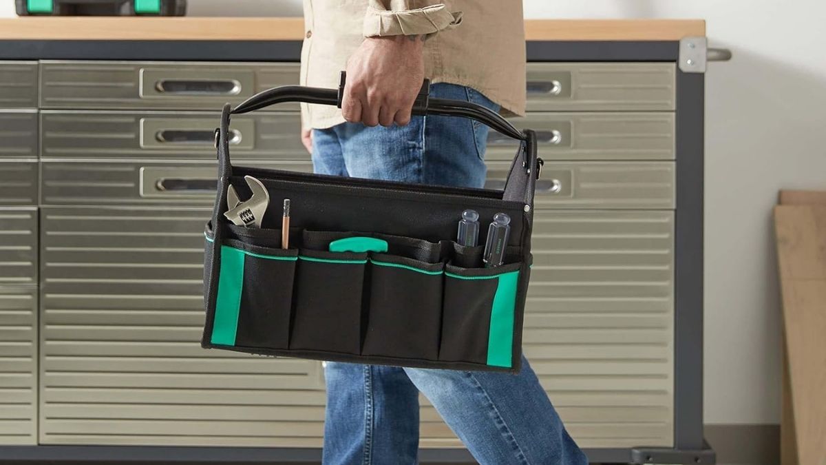 What makes the Amazon Basics Tool Tote with 30 pockets and built-in LED lighting a must-have for professionals and DIYers? Discover this durable black bag that delivers superior organization, comfort, and visibility for all your projects.