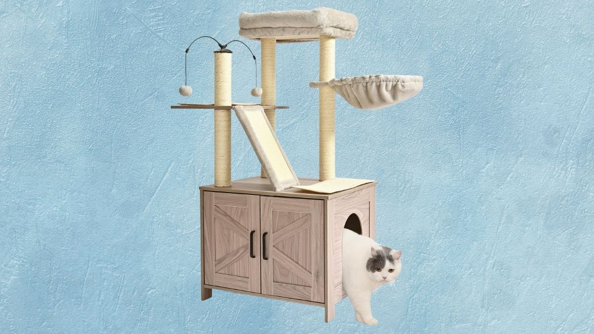 What makes the Amazon Basics Furniture-Style Cat Tree with Litter Box Enclosure the perfect blend of functionality and style for cat owners? This elegant 2-in-1 solution conceals litter while providing a comfortable perch.