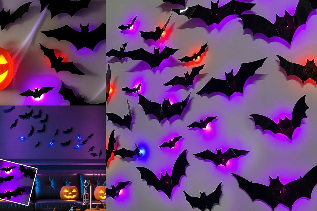 Get 2025 New Halloween 3D Lighted Bats with glowing purple LED effects. Perfect reusable decor for spooky walls, ceilings, and windows—only $12.46!