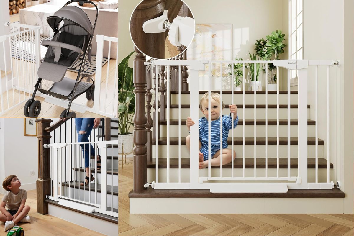 The Cumbor 29.7-46″ Auto-Close Baby Gate offers hassle-free safety for babies and pets with pressure-mount setup, auto-close, and durable steel frame.