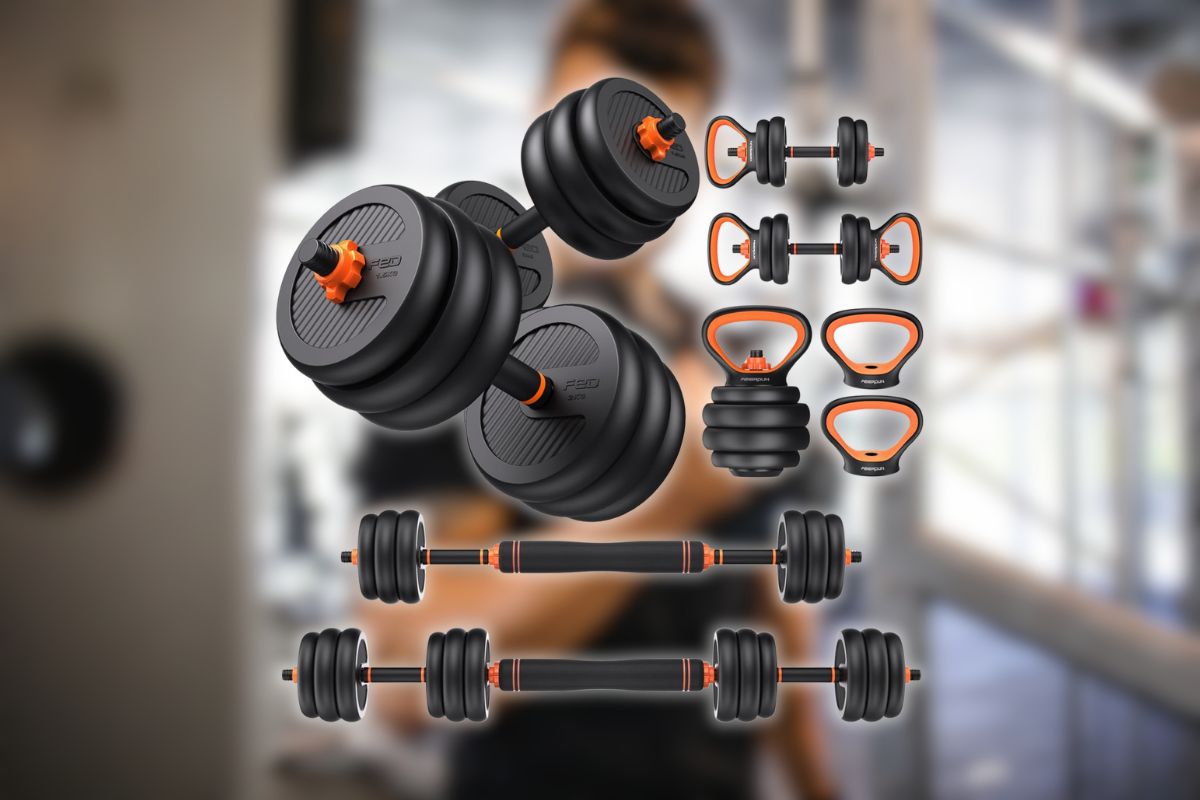 Transform home workouts with FEIERDUN Adjustable Dumbbells, a 4-in-1 fitness system offering dumbbells, barbell, kettlebells, and push-up stands.