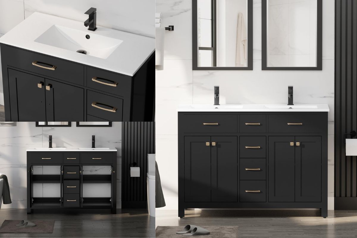 Upgrade your space with the LUCKWIND 48″ Bathroom Vanity with Sink Combo—modern design, ample storage, and double sinks for functional luxury.