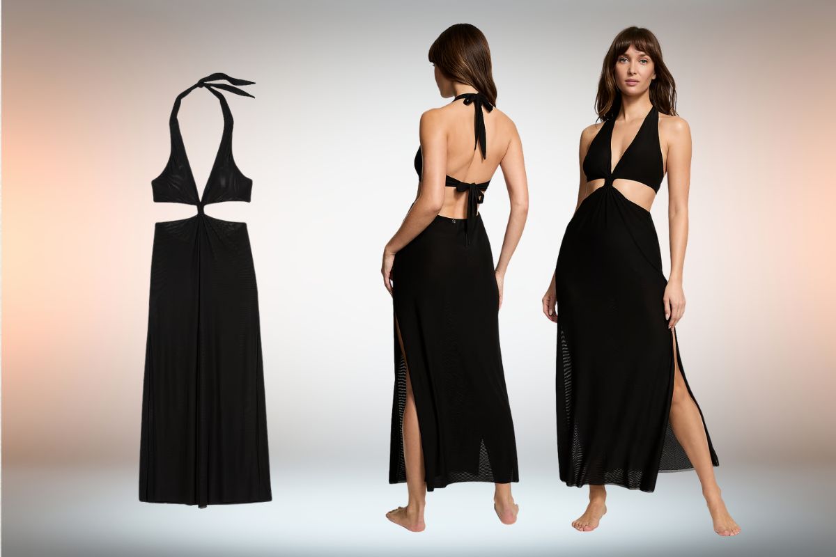 Discover the Teyana Taylor Mesh Cut-Out Maxi Dress from Victoria's Secret, a $79.95 black mesh dress perfect for beach days and glamorous evenings.